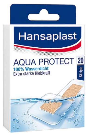 Hansaplast Aqua Protect Pflaster, 100 % wasserdicht, 12 Strips 25 x 72 mm, 8 Strips 39 x 39 mm, 20 Stück (0,30 EUR / Stück)