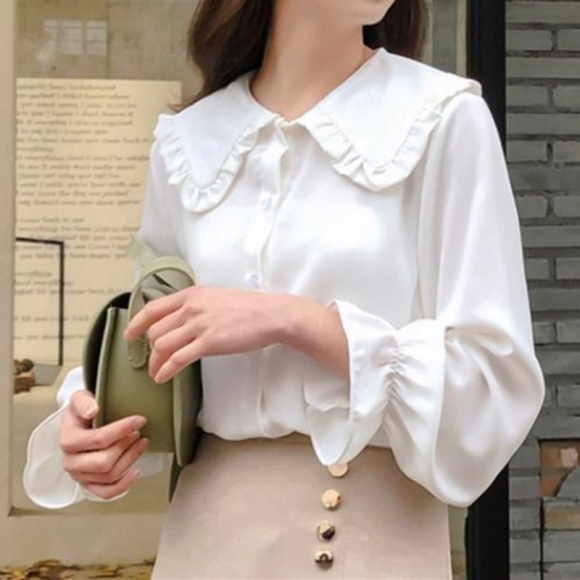 2022 fr¨¹hling Herbst Langarm R¨¹schen Peter Pan Kragen Frauen Blusen Tops Schuluniform Student Teen M?dchen Wei?