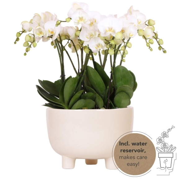 3x Orchideen & 3x Rhipsalis Weiße Zimmerpflanzen Orchideen Amabilis | Kolibri Orchidaceae Schmetterlingsorchidee im Schilfkorb inkl. Wassertank