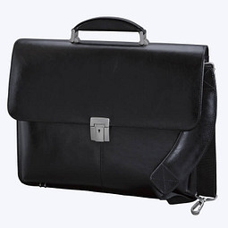 Hochwertige und solide Aktentascheaus schwarzem Leder mitabnehmbarem Schultertragegurt.Das Hauptfach bietet ein Organisationsfachmit Stifteschlaufen,Visitenkartenfächern und A4-Fächern. Weiteres Fach auf der Vorder- und Rückseite. Maße: ca. 40 x 14 x 30 cm.Solange der Vorrat reicht.