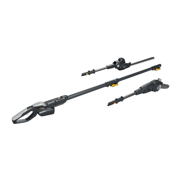 Lass Deine wackeligen Leitern im Schuppen und schneide Deine hohen Heckenspitzen und schwer erreichbaren, überhängenden Äste bequem und sicher vom Boden aus - mit diesem vielseitigen, kabellosen Zwei-in-einem-Multiwerkzeug von Alpina! Das ALPINA Akku-Multitool AMT 20 Li wird mit einem Hochentaster- und einem Heckenscherenaufsatz geliefert. Ausgestattet mit einem teleskopischen Schaft, der um 65 cm verlängert werden kann, erreicht das Multitool eine maximale Arbeitshöhe von bis zu 4 m mit dem Entaster-Aufsatz und 4,3 m mit dem Heckenscheren-Aufsatz erreicht. Der Hochentaster besteht aus einem kompakten 8" Motorsägenkopf mit einer Hochleistungskette, die einen glatten Schnitt liefert und Rückschläge minimiert. Die Heckenschere ist ein flexibles Werkzeug mit einem 112° neigbaren Schneidkopf. Hiermit findest Du immer den bequemsten und ergonomischsten Arbeitswinkel. Die schnell arbeitende und 41 cm lange doppelseitige Klinge wurde lasergeschnitten, um eine lange Lebensdauer und saubere Arbeitsergebnisse zu erzielen. Der ALPINA Akku B 240 (20 Volt, 4 Ah) und ein Ladegerät sind im Lieferumfang enthalten.2-in-1 Gerät für den Heckenschnitt und zum Entasten vom BäumenHeckenscherenaufsatz mit lasergeschnittenem Schwert, doppelseitiger Schnitt und 41 cm SchnittlängeHochentaster mit hochwertigem 20 cm Oregon "low-kickback" Schwert und KetteTeleskopischer Schaft zur individuellen Anpassung der ArbeitshöheInklusive ALPINA Akku B 240 (20 Volt, 4 Ah) und Ladegerät