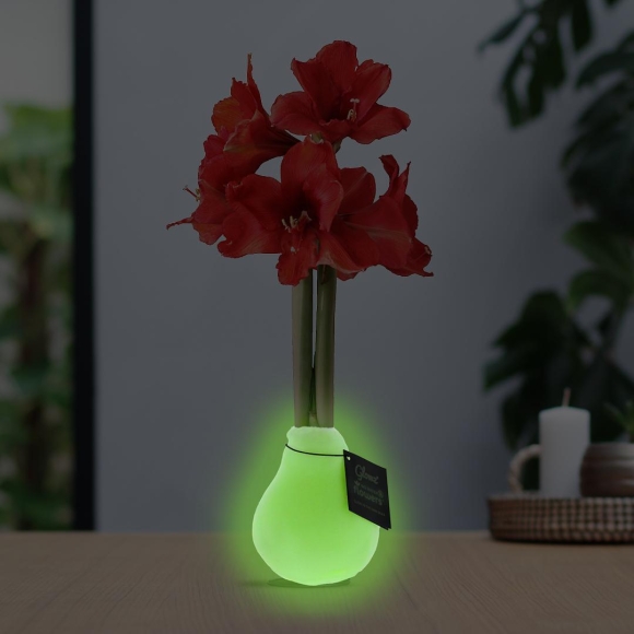 Amaryllis No Water rote Blume mit leuchtendem Topf - Leuchtende Pflegeleichte Zimmerpflanze Nachtlicht Glow in the Dark