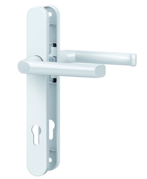 BASI - Schmalrahmen-Drücker-Garnitur - rund - Alu Weiß - Lochung: PZ - 92/8 mm
