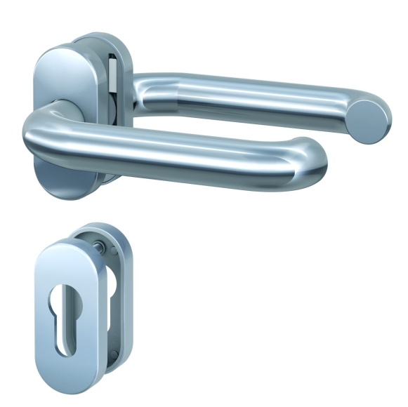 Die Schmalrahmen-Garnitur für Profilrahmentüren ist aus hochwertigem Edelstahl. Sie ist bestens für den Innenbereich geeignet und besitzt zugleich eine Vorrichtung für Profilzylinder. Die Drücker-Drücker Garnitur lässt sich bei allen gängigen Innentüren mit einer Türstärke von 38-45 mm verbauen. Die Rosetten kommen in ovaler Ausführung, die Türklinken sind in U-Form -DIN Rechts / Links verwendbar.Schmalrahmen-Drücker-Garnitur für Profil- und Rahmentüren mit ProfilzylinderHochwertige Qualität und elegantes DesignFest-/Drehbare Drücker-Lagerung der TürklinkenFür Türstärken 38-45 mm, nicht sichtbare VerschraubungMaterial: Edelstahl