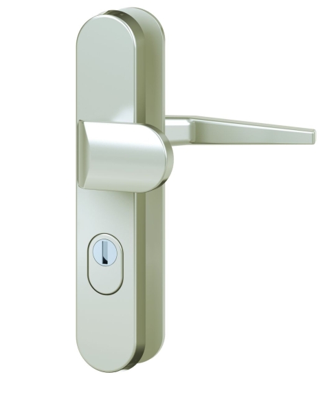 Der massive Vollmaterial-Schutzbeschlag mit Zylinderabdeckung der Marke BASI besteht aus hochwertigem Aluminium. Der Beschlag besteht aus einem abgerundeten Knauf außen und einem Drücker in Standard innen. Das runde Langschild besitzt eine Schildstärke von 15 mm. Die Wechselgarnitur ist mit einem Abstand von 72 / 92 mm gefertigt. Der Beschlag kann bei allen Außentüren, Zwischentüren oder Nebeneingangstüren, die nur von einer Seite aus geöffnet sein sollen eingesetzt werden. Zudem kann der Türbeschlag auch bei gängigen Wohneingangs- oder Haustüren verwendet werden. Durch die vorgefertigte Profilzylinderlochung für einen Türzylinder, kann die Tür von beiden Seiten mit dem Schlüssel geöffnet werden. Die integrierte Zylinderabdeckung gibt dem eingesetzten Türzylinder zusätzliche Sicherheit bei versuchten Einbrüchen von der Außenseite. Der Schutzbeschlag aus Vollmaterial kann bei Türen mit einer Türblattstärke von 38-42 mm, sowohl DIN Rechts / DIN Links eingesetzt werden. Massiver Vollmaterial-Schutzbeschlag für Nebeneingangstüren, Außentüren oder WohneingangstürenRunde Langschildgarnitur, 15 mm Schildstärke, Abstand 72 / 92 mm für Türstärken 38-42 mmDIN Rechts / Links verwendbarWechselgarnitur, Außen: runder Knopf gekröpft, Innen: Klassischer Türgriff (Klinke) in StandardMaterial: Vollmaterial, hochwertiges Aluminium, einfache Montage