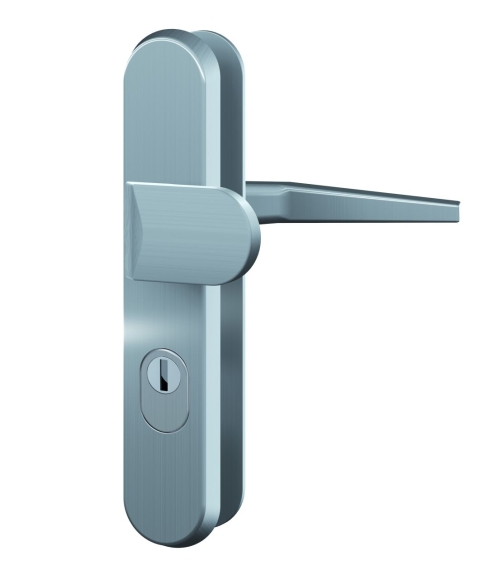 BASI ES0 Vollmaterial Schutzbeschlag in Alu IROXWechsel Garnitur für Profilzylinder aus hochwertigem Aluminium mit Schutzrosette in Alu IROX. Die Garnitur ist eckig und kommt mit einem Langschild. Perfekt geeignet für Kellertüren, Garagentüren, Haustüren, Wohnungstüren uvm.Technische DatenWechsel GarniturKnopf: rund gekröpftLangschild eckigMaterial: AluminiumInnen sichtbare VerschraubungSchutzrosetteFür Türstärke 38 - 42 mmVierkantstift (LxBxH) 72 x 15 x 8 mmLieferumfangVollmaterial Schutzbeschlag