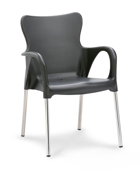 4-tlg. Set Maui, bestehend aus 4x Stapelsessel Maui. Die extravagent geformte massive Kunststoffschale bietet einen herrlichen Sitzkomfort. Die seidenmatte Oberfläche der Sitzschale sowie das polierte Aluminiumgestell unterstreichen die besondere Optik des Sessels. Bei Platzbedarf lässt sich dieser Stuhl leicht stapeln. Der Sessel UV-beständig und absolut wetterfest. Maße: Gesamtmaß BxTxH in cm: 54x52x81 / Sitzfläche BxT in cm: 43x41 / Sitzhöhe: 45 cm / Höhe der Armlehne: 63 cm / Höhe der Rückenlehne: 41 cm