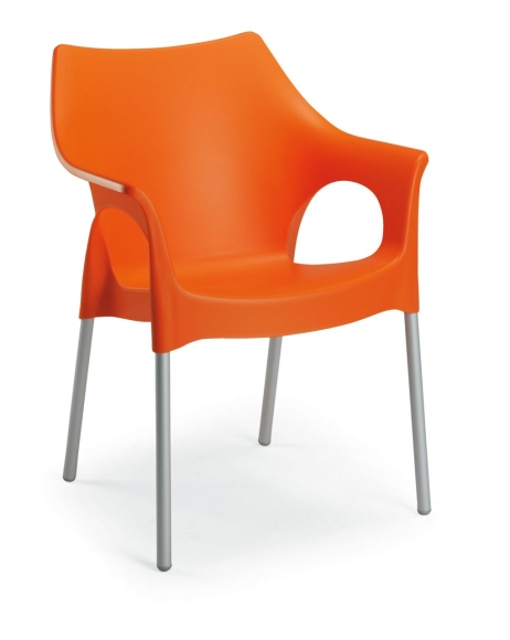 4-tlg. Set Vegas, bestehend aus 4x Stapelsessel Vegas. Der Sessel Vegas steht selbstbewußt und einladend auf Terrassen, auf dem Balkon, in Cafes und selbstverständlich auch im modernen Wohnbereich. Die körpergerecht geformte massive Kunststoffschale im klassischen Retro-Look bietet einen herrlichen Sitzkomfort. Die Seidenmatte Oberfläche der Sitzschale sowie das eloxierte Aluminiumgestell unterstreichen die besondere Optik des Sessels. Bei Platzbedarf lässt sich dieser Stuhl leicht stapeln. Darüber hinaus ist der Sessel UV-beständig und absolut wetterfest. Maße: Gesamtmaß BxTxH in cm: 59x56x82 / Sitzfläche BxT in cm: 42/35x39 / Sitzhöhe: 45 cm / Höhe der Armlehne: 64,5 cm / Höhe der Rückenlehne: 43 cm