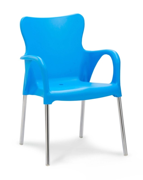 Die extravagent geformte massive Kunststoffschale bietet einen herrlichen Sitzkomfort. Die seidenmatte Oberfläche der Sitzschale sowie das polierte Aluminiumgestell unterstreichen die besondere Optik des Sessels. Bei Platzbedarf lässt sich dieser Stuhl leicht stapeln. Der Sessel UV-beständig und absolut wetterfest. Maße: Gesamtmaß BxTxH in cm: 54x52x81 / Sitzfläche BxT in cm: 43x41 / Sitzhöhe: 45 cm / Höhe der Armlehne: 63 cm / Höhe der Rückenlehne: 41 cm
