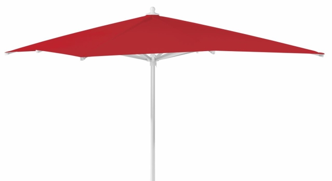 Der Großschirm Mallorca besitzt ein sehr stabiles Aluminiumgestell, einen zweiteiligen Stock mit 55 mm Ø sowie acht Streben aus Aluminium-Vierkantrohr. Die zusätzliche Pulverbeschichtung macht das Gestell pflegeleicht und absolut korrosionsbeständig. Die einzigartige Technik mit Seilzug und automatischer Arretierung ermöglicht ein einfaches und schnelles Öffnen und Schließen des Schirmes. Der Schirm mit 300 x 300 cm ist hochwertig bespannt mit 100 % Polyestergewebe, wetterfest und wasserdicht bis 300 mm Wassersäule. Das Gewebe ist lichtecht und schmutzabweisend beschichtet.
