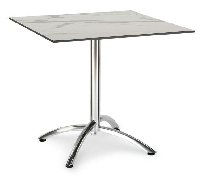 Die robusten, bruchsicheren 12 mm starken HPL-Schichtstoff-Tischplatten in drei Dekoren sind pflegeleicht, kratzfest und praktisch unverwüstlich. Hochwertiges, hochglanzpoliertes Aluminiumgestell, leicht, rostfrei und platzsparend in sich stapelbar. Handlicher, einfacher Klappmechanismus mit Sicherheits-Arretierung. Mit Niveau-Ausgleichsschrauben sind alle Unebenheiten am Boden auszugleichen. Mit einer praktischen Sicherheitsöse können die Tische durch ein Drahtseil verbunden und vor Diebstahl gesichert werden. Ideal für den Objektbereich geeignet. Maße: eckig 80x80 cm / Tischhöhe: 73 cm