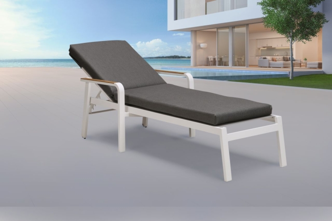 Die edle Optik fein abgemischter Pastelltöne, werden durch den eleganten Glanz des Bezugsstoffes aus 100 % Acryl unaufdringlich unterstrichen, 260 g/m² mit einer hohen Lichtechtheit (7/8). Die Polster sind wasserabweisend, antibakteriell und deshalb äußerst pflegeleicht. Sie sind mit einem Reißverschluss versehen und problemlos bei 30° waschbar. Maße: 190 x 60 cm/ Stärke: 7 cm