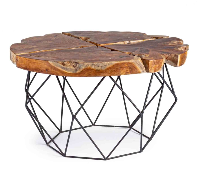 Die Tischplatte des Couchtisches Adanya wurde aus Stücken echter Teakholz-Wurzeln gefertigt welche eine Feinbearbeitung bekommen haben. Dadurch ist jedes Stück unterschiedlich und individuell. Das Gestell ist aus Stahl und hat eine ganz besondere Form.