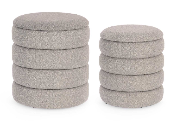 Bizzotto - Pouf Katerina 2er-Set aus Boucle-Stoff Hellgrau
