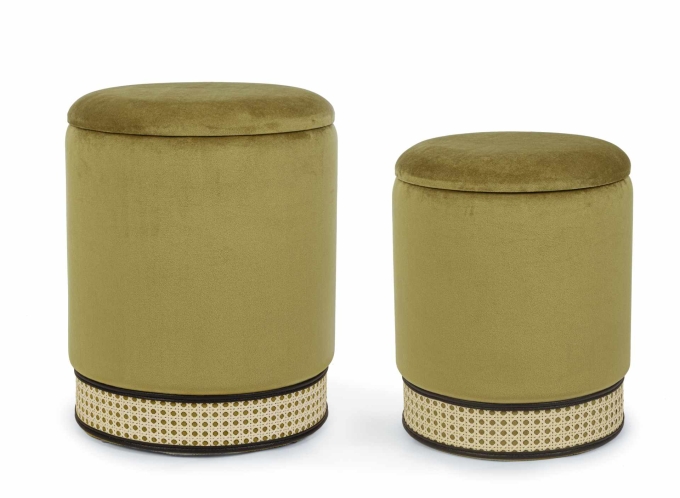 Bizzotto - Pouf Milena 2er-Set mit Samt-Optik Olive