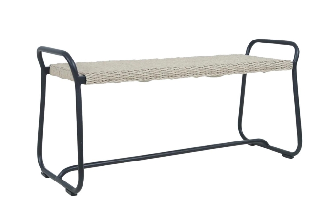 Unsere Gartenbank Midway besticht durch seine moderne Eleganz und das pflegeleichte Material. Diese Serie wird aus Pulverbeschichtetem Gestell und einem Geflecht aus Polyrattan hergestellt.