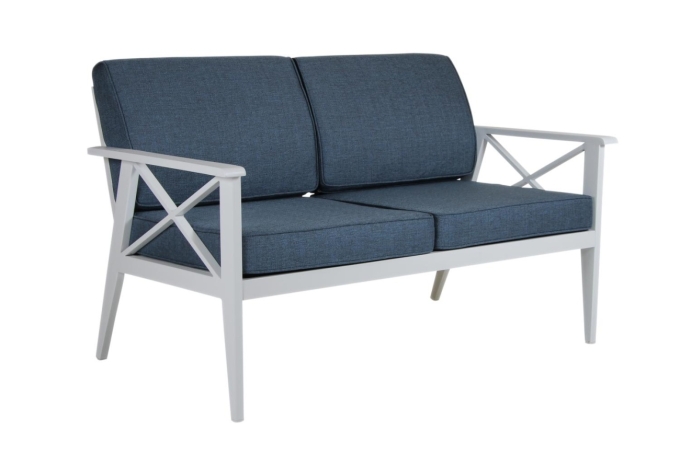 Entdecken Sie unsere Gartenbank Sottenville von Brafab die mit einem klassischem Design und zeitlosen Ästhetik beeindruckt. Diese exquisite Gartenbank ist aus einer hochwertigem Aluminiumgruppe in Weiß gefertigt und verleiht Ihrem Garten Ihrer Terrasse oder Ihrem Balkon eine charmante Atmosphäre.  Das Herzstück dieser Gartenbank ist die kunstvoll gestaltete Rückenlehne die mit einem stilvollen Kreuzmuster verziert ist. Dieses Detail verleiht der Bank eine besondere Note und macht sie zu einem Blickfang in jedem Garten. Die konischen Beine sorgen nicht nur für eine stabile Konstruktion sondern verleihen ihr auch eine zusätzliche ästhetische Dimension. Die Kissen sind aus Olefin-Stoff.