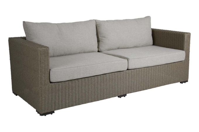 Das Gartensofa Funkia von Brafab ist ein geräumiges Sofa für den Garten das aus synthetischem Rattan gefertigt ist. Das Rattan verleiht dem Sofa eine natürliche Optik während es gleichzeitig witterungsbeständig und langlebig ist. Das Sofa wird mit Sitzkissen die aus Olefin-Stoff gefertigt sind geliefert. Olefin ist ein robustes Material das für den Außenbereich geeignet ist. Dank der Verwendung hochwertiger Materialien ist das Sofa langlebig und kann den täglichen Anforderungen im Freien standhalten. Das geräumige Design bietet ausreichend Platz.