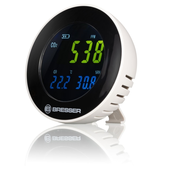 Es gibt immer Gründe, trotz stickiger Luft die Fenster geschlossen zu halten: viel zu kalt draußen, keine Lust auf lästige Insekten, einfach vergessen. Dabei ist CO2 nicht nur im Zusammenhang mit dem Klimawandel ein Thema. Luftfeuchtigkeit geht nicht nur Pflanzenfreunde etwas an. Besonders in geschlossenen Räumen mit vielen Menschen geht uns ohne frische Luft schnell die Puste aus, der Wohlfühlfaktor sinkt und die Konzentrationsfähigkeit nimmt ab. Mit dem BRESSER CO2-Messgerät mit Datenlogger zur Prüfung der Luftqualität INV behalten Sie das Raumklima in den eigenen vier Wänden oder in Klassenzimmern, Büroräumen und Co. im Auge. Und das direkt auf den ersten Blick: Denn Kohlendioxid-Konzentration, Temperatur und Luftfeuchtigkeit werden Ihnen auf dem übersichtlichen LED-Bildschirm gleichzeitig angezeigt. Doch schauen Sie nicht nur bei den aktuellen CO2-Messwerten genau hin: Die Entwicklung des Raumklimas kann wichtige Anhaltspunkte zu Defiziten in den Lüftungsgewohnheiten liefern. Hier profitieren Sie von der Aufnahmefunktion des CO2-Luftqualitätsmessers: einfach an einem ausgewählten Ort aufnehmen und nachher am Computer auswerten. Die passende Windows-Software laden Sie sich vorher ganz unkompliziert über den angegebenen Link herunter.Flexibles CO2-Messgerät gegen dicke LuftDie Zeit ist knapp und der CO2-Wert steht auf Ihrer Prioritätenliste nicht ganz oben? Kein Problem: Mit der Alarmfunktion stellen Sie eine individuelle CO2-Obergrenze ein. Wenn diese überschritten ist, ertönt der Signalton: Zeit zu lüften! In der Handhabung überzeugt das CO2-Messgerät mit seiner Flexibilität: Es wird über die eingebaute, wiederaufladbare Lithium-Batterie betrieben und lässt sich somit frei positionieren – und zwar an der Wand oder auf dem Standfuß. Über das mitgelieferte Netzteil mit Micro-USB-Kabel laden Sie die Batterie wahlweise am Computer oder an der Steckdose. Mit dem BRESSER CO2-Messgerät mit Datenlogger zur Prüfung der Luftqualität INV lösen sich Ihre Raumklimaprobleme schnell in Luft auf.EIGENSCHAFTENKohlendioxid-Messgerät zur Kontrolle der LuftqualitätGleichzeitige Anzeige von CO2-Konzentration, Temperatur (°C / °F) und LuftfeuchtigkeitLED-AnzeigeKohlendioxid-AlarmfunktionSpeichern und Anzeigen Ihrer aufgezeichneten Daten über die mitgelieferte Windows-SoftwareHohe Präzision, hohe Auflösung, schnelle ReaktionszeitKohlendioxid (CO2)Bereich: 0 ~ 9999 ppmGenauigkeit: ± 70 ppm oder ± 3% rdg (0 ~ 5000 ppm)Reaktionszeit: 1sTemperaturbereich: -10 ~ 70 ℃Auflösung: 0,1 ℃ / ℉Genauigkeit: ± 0,3 ℃ (10 ~ 50 ℃), andere ± 1,2 ℃Feuchtigkeitsbereich: 0,1 ~ 99,9% relative LuftfeuchtigkeitAuflösung: 0,1%Genauigkeit: ± 3% (10 ~ 90%)Protokollierungsspeicher: 12700Betriebszustand: 0 ~ 50 ℃, 0 ~ 85% rF (Keine Kondensation)Lagerungszustand: -20 ~ 60 ℃, 0 ~ 99% rF (Keine Kondensation)Sensorlebensdauer: 15 Jahre bei normaler KommunikationLagertemperatur: -20 ~ 60 ℃, 0 ~ 90% rF (Keine Kondensation)Akku: 3,7 V wiederaufladbarer Li-Ionen-Polymer-AkkuGröße: 250 × 160 × 65 mmGewicht: 428 gLIEFERUMFANGCO2-LuftqualitätsmonitorWindows-Software als DownloadMicro-USB-KabelNetzteilBedienungsanleitung