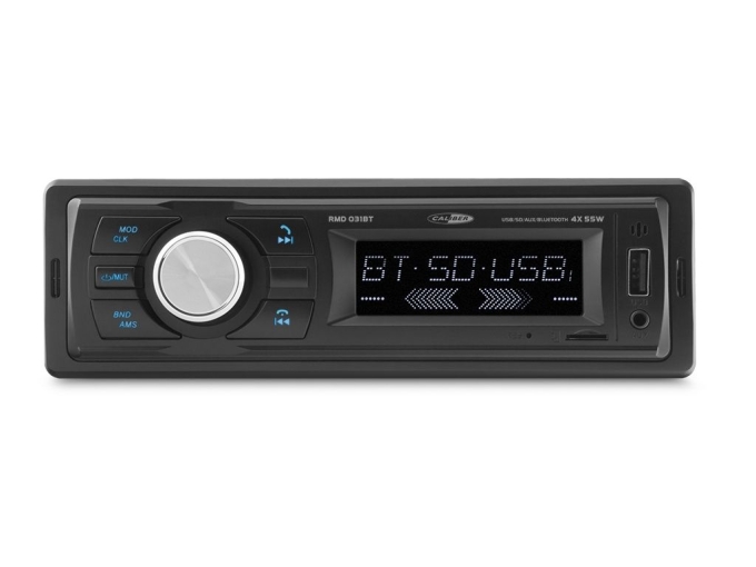 Das Caliber RMD031 ist ein einfaches Autoradio, mit dem Sie Ihre Lieblingsmusik abspielen können. Stellen Sie 18 FM-Voreinstellungen ein, so dass Sie während der Fahrt leicht zwischen den Radiosendern wechseln können. Das Radio ist einfach zu bedienen, alle Tasten und Eingänge sind über die Frontplatte offen zugänglich.SpielmöglichkeitenDas Radio verfügt über einen eingebauten CD-Player, einen Aux-Eingang, einen USB-Eingang und einen SD-Kartenleser, so dass Sie genügend Möglichkeiten haben, im Auto Musik abzuspielen. Der RMD031 spielt Ihre Musik mit der maximalen Leistung von 4 x 55 Watt lautstrong ab. So übertönt der Klang des Autos niemals Ihre Lieblingslieder während der Fahrt. Wählen Sie dank des voreingestellten 3-Band-Equalizers den Klang nach Ihren Wünschen. Dieses Hauptgerät hat die Standardgröße 1-DIN, so dass Sie Ihr altes Hauptgerät leicht ersetzen können.Weitere FunktionenDas Caliber RMD031 hat einen RCA-Ausgang, an den Sie einen separaten Verstärker anschließen können, um Ihren Klang zu personalisieren. Die RDS EON-Radiofunktion zeigt nützliche Informationen wie den Radiosender, das Programm oder die Uhrzeit auf dem Display an. Sie können Verkehrsinformationen z.B. auch über das Autoradio empfangen. Bedienen Sie den RMD031 mit der mitgelieferten Fernbedienung. Dieses Radio hat die Standardgröße 1-DIN, so dass Sie Ihr altes Autoradio problemlos austauschen können.