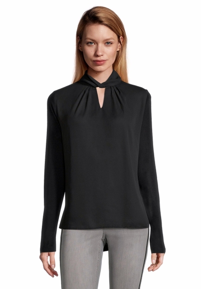 Merkmale + Hersteller: Cartoon + Modellname: Blusenshirt  + Geschlecht: Damen + Farbe: black + Material: Viskose 100% + Muster: einfarbig + Anlass: modern + Kollektion: Ganzjahresartikel + Artikelnummer: 8542/7157-9045Schnitt + Passform: gerade geschnitten + Ausschnitt: Rundhals + Länge: Normale länge (Größe 36, L = 65 cm), Ärmellänge (Größe 36, L = 60 cm), Brustlänge ( Größe 36, L = 40 cm) Wasch & Pflegetipps + Waschen: Maschinenwäsche bis 30° Grad + Bügeln: Bei mittlerer Temperatur (max. 150° Grad) + Chemische Reinigung: Alle allgemeinen üblichen Lösungsmittel erlaubt + Bleichen: Nicht erlaubt + Trocknen: Liegend