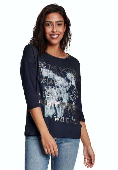 Merkmale + Hersteller: Cartoon + Modellname: Shirt lang + Geschlecht: Damen + Farbe: black + Material:Viskose 92, Elastan 8% + Muster: einfarbig mit Frontdruck + Anlass: modisch + Kollektion: Ganzjahresartikel + Artikelnummer: 2203/7958-8894Schnitt + Passform: gerade geschnitten + Ausschnitt: Rundhals + Länge: Normale länge (Größe 36, L =59 cm), Ärmellänge (Größe 36, L = 40 cm), Brustlänge (Größe 36, L= 40cm)Wasch & Pflegetipps + Waschen: Maschinenwäsche bis 30° Grad + Bügeln: Bei mittlerer Temperatur (max. 150° Grad) + Chemische Reinigung: Alle allgemeinen üblichen Lösungsmittel erlaubt + Bleichen: Nicht erlaubt + Trocknen: Liegend
