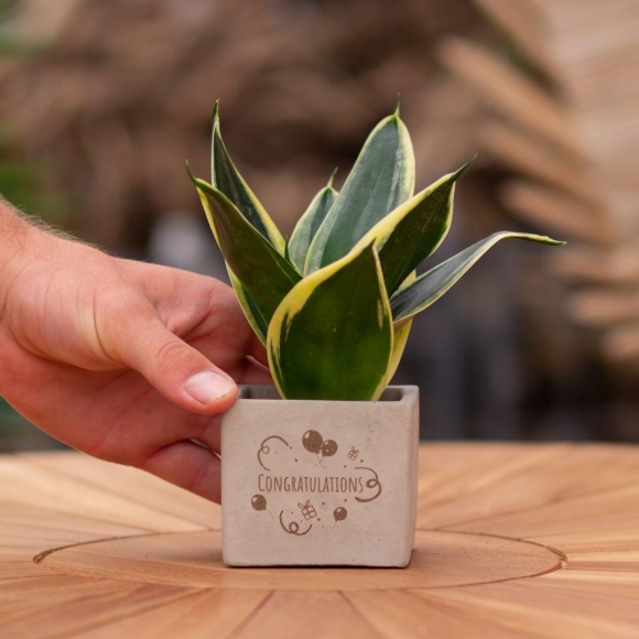 Congreetz® Plantpots - Sansevieria Bogenhanf Zimmerpflanze im Betontopf "Congratulations" - Pflegeleichte Glückwunschpflanze