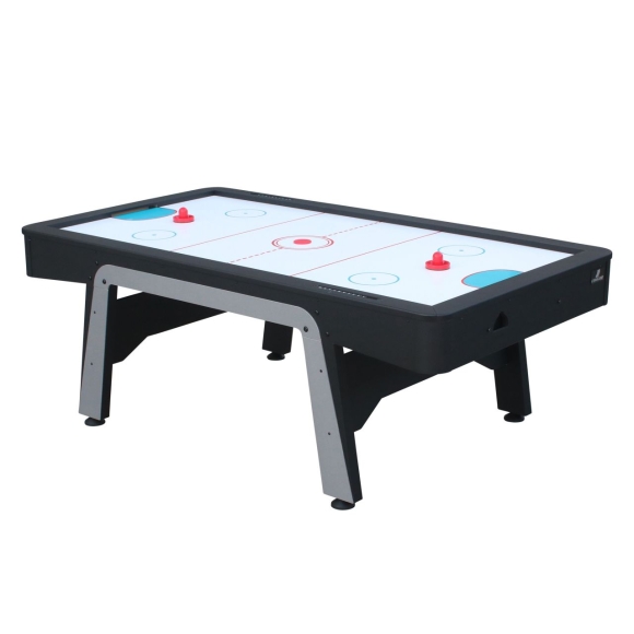 Lassen Sie den Puck über den Tisch sausen und punkten Sie mit dem Arch Pro Airhockey Tisch! Mit diesem luxuriösen 7ft. Airhockey Tisch sind aufregende Spieleabende zu Hause garantiert! Mit einem Gewicht von 105 kg ist der Tisch äußerst stabil und steht auch bei einem fanatischen Spiel fest auf seinen Beinen. Nehmen Sie die Herausforderung an und spielen Sie gegen alle Ihre Freunde und Verwandten!Der Tisch hat einen stabilen schwarzen Rahmen auf dem das Gehäuse steht. Das Gehäuse besteht aus 25 mm MDF und ist schwarz furniert. Der Spieltisch hat auf beiden Seiten Platz für die Puckrückgabe. Auf der Oberseite des Tisches befinden sich 2 Punktezähler, so dass man den Spielstand im Auge behalten kann!Das SpielfeldDer Airhockeytisch verfügt über eine hervorragend gleitende 18 mm dicke Spielfläche mit einer kratzfesten PVC-Deckschicht. Dies ist sehr wichtig, denn ein gutes Airhockeyspiel hängt von einer glatten Spielfläche ab. Der leistungsstarke Motor lässt den Puck leicht und schnell über die Spielfläche gleiten. Das Spielfeld ist weiß mit roten und blauen Linien und hat eine Fläche von (LxB) 206 x 104 cm. Der Cougar Arch Pro Airhockeytisch wird inklusive 2 Schläger und 4 Pucks geliefert. Der Cougar Arch Pro ist Teil der Cougar Pro Linie, die mit einer 5-Jahres-Garantie ausgestattet ist!