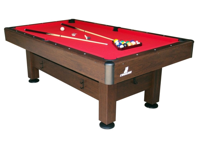 Sie müssen das Haus nicht verlassen, um einen gelungenen Billardmoment zu erhalten. Der Saphir Billardtisch von Cougar bietet alles, was Sie von einem Billardtisch erwarten können. Mit den verstellbaren Beinen können Sie die Tischhöhe um ca. 5 cm verstellen und daher ihn daher präzise aufstellen. Das schwere, robuste Schränkchen und ein Gesamtgewicht von ca. 120 kg garantiert die Stabilität des Tisches. Der Tisch ist außerdem mit Kunststofftaschen, schwarzen Aluminium-Eckplatten und einer Gummi-Innenkante für optimalen und präzisen Ballrückstoß ausgestattet. Wenn Sie mit dem Spielen fertig sind, können Sie die Bälle in den Taschen lassen und einfach die Queues und das Dreieck an den Seiten des Tisches aufhängen.SpielfeldDas Spielfeld ist Rot und (LxBxH) 200 x 100 x 3,9 cm groß. Das Feld ist 21 mm dick und hat eine Hartplastik-Deckschicht, die mit einem Tuch aus 50 % Wolle / 50 % Polyester überzogen ist, damit die Bälle gut rollen.Der Tisch wird spielfertig geliefert; mit vorgespannter Spielfläche und allem Zubehör, das Sie benötigen. Nach dem einfachen Aufstellen ist der Billardtisch einsatzbereit und Sie können stundenlang Spaß haben. Sie erhalten auch 2 Jahre Garantie auf den Cougar Saphir Billardtisch.