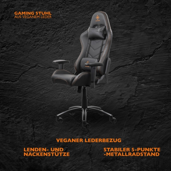Dieser ergonomisch gestaltete Gamingstuhl aus hochwertigem Kunstleder ist in seiner Form den Schalensitzen nachempfunden, die man aus Ralley-Autos kennt. Die hohe Rückenlehne und die zusätzlichen Kissen für Kopf und Lendenbereich sorgen für ein angenehmes Sitzgefühl, auch bei längeren Gaming-Sessions. Die Höhen der Sitzfläche, der Armlehnen und Kissen lassen sich vollständig an die eigenen Sitzvorlieben anpassen, darüber hinaus ist die Neigung der Rückenlehne stufenlos bis zu einem Winkel von 180 Grad einstellbar. Die stabile 5-Punkt-Rollenlagerung erlaubt einen festen, dennoch mobilen Stand.