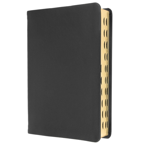 Eine hochwertige Standardausgabe mit eingestanztem Griffregister, Goldschnitt und flexiblem Einband aus edlem, schwarzem Leder.