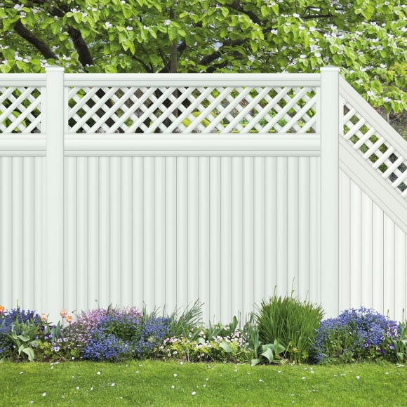 Oslo Line Der weiße Kunststoffzaun Oslo Line bringt ländliches Flair in den Garten. Die helle Farbe in Kombination mit dem Rankgitter sorgt für eine freundliche, aufgelockerte Ausstrahlung. Dank des unkomplizierten Materials – der Zaun besteht aus hochwertigem Fensterkunststoff – ist der maximale Pflegekomfort gegeben. Pflegeanstriche sind nicht erforderlich. Auch die Montage des Sichtschutzes Oslo Line ist denkbar einfach. Verpackt in handliche Pakete bringen Sie den Zaun ohne Aufwand an den gewünschten Ort. Das gut durchdachte Stecksystem lässt sich mit wenig Mühe kinderleicht montieren.Oslo Line: Stilvoller Zaun – verbreitet ländliches Flair