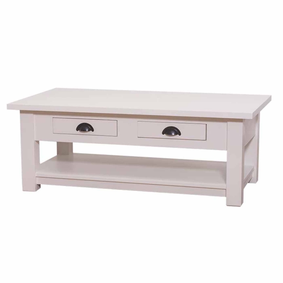 Feeling4Home - Couchtisch Landhaus aus Kiefernholz 2 Schubladen 1 Fach mit Eichenplatte