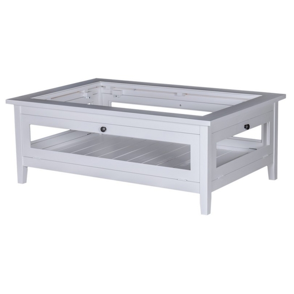 Feeling4Home - Couchtisch Landhaus aus Kiefernholz Oberfläche aus Glas 4 Glasklappen mit Eichenplatte