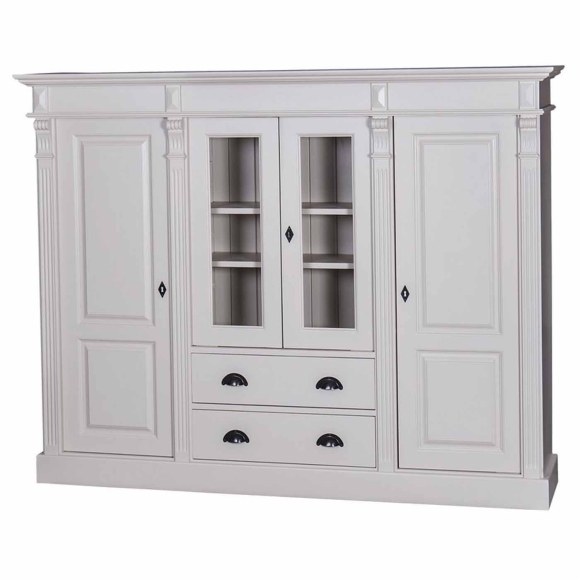 Feeling4Home - Highboard Landhaus aus Kiefernholz 2 Glastüren 2 Türen 2 Schubladen