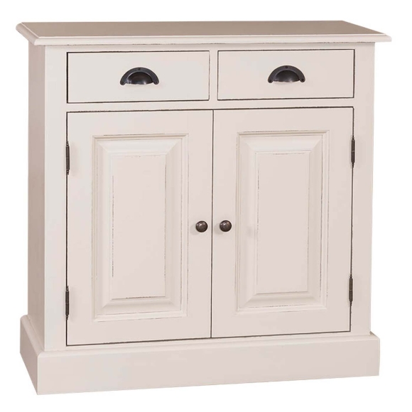 Feeling4Home - Kommode Landhaus aus Kiefernholz 2 Türen 2 Schubladen mit Eichenplatte