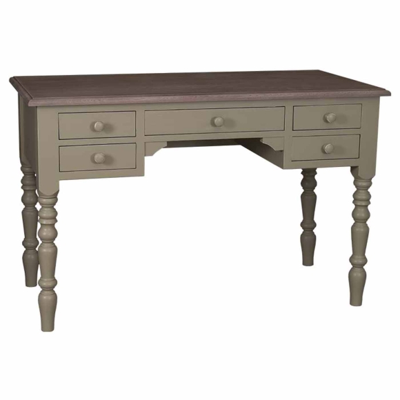 Feeling4Home - Schreibtisch Landhaus aus Kiefernholz 5 Schubladen mit Eichenplatte