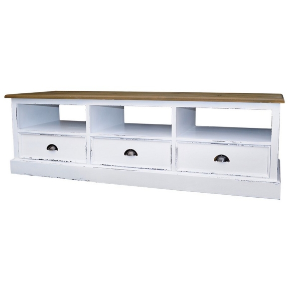 Feeling4Home - TV-Board Landhaus aus Kiefernholz 3 Schubladen 3 Fächer mit Eichenplatte