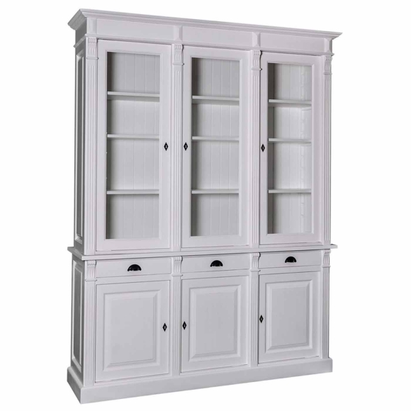 Feeling4Home - Vitrine Landhaus aus Kiefernholz 3 Glastüren 3 Türen 3 Schubladen