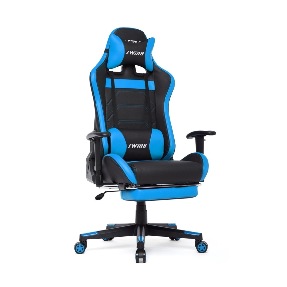 Rally Gaming Stuhl mit Einziehbarer Fu?st¨¹tze - Blau