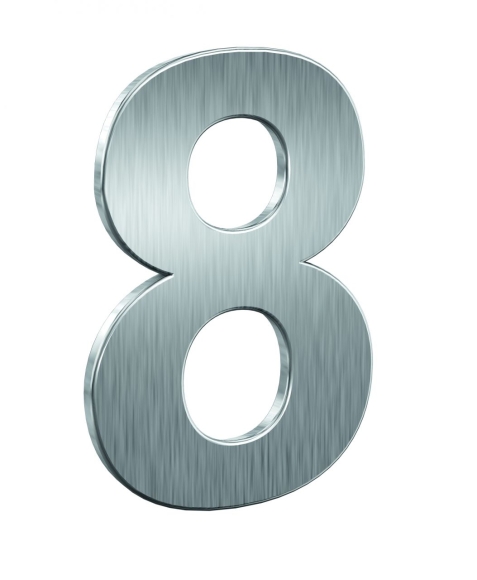 Basi Hausnummer 8, EdelstahlHausnummer 8, einfach zu montieren und gut sichtbar. Die Zahl ist aus gebürstetem Edelstahl gefertigt und rostfrei sowie Witterungsbeständig. ProduktmerkmaleAus geschliffenem / gebürstetem EdelstahlRostfrei sowie witterungsbeständigEinfache Montage der Hausnummer, hierzu einfach in die Hauswand bohren, den Nagelstift am Gewinde der Hausnummer befestigen und mit einem Hammer die Zahl in die Dübel SchlagenErhältlich in den Ziffern 0, 1, 2, 3, 4, 5, 6 ,7 ,8 ,9 (einfach die 6 umdrehen) sowie in den Buchstaben a, b und cTechnische DatenMaterial: V2A EdelstahlVertikal gebürstet2 Gewindebolzen auf der RückseiteRostfrei und witterungsbeständigMaße: 108 mm / 156 mm / 132 mm