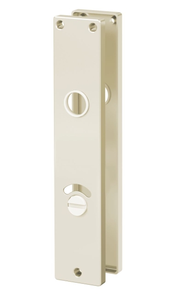 Langschildpaar für WC-Türen oder Badezimmertüren mit angebrachten Drehknauf zum Verschließen der Türen. Das Schildpaar für WC-Türen dient als Ersatz für alte, ausgediente oder defekte Langschilder. Die Befestigung erfolgt anhand 3 sichtbarer Schrauben. Die Entfernung beträgt 78 mm. Die Schilder können an allen gängigen WC-Türen angebracht werden. Ausführung: Eckig / KäntigLangschildpaar für Badezimmer- oder Gäste-WC-Türen in käntiger AusführungMit Drehknauf zum Verschließen der WC-TüreBefestigung an der Tür anhand von 3 SchraubenFarbe: Aluminium F2 champagnerfarbenAusführung: Eckig, mit WC-Schloss, Entfernung: 78 mm