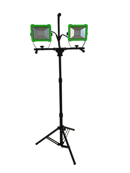 Der BCL TWIN LED ist ein energieeffizienter LED Arbeitsstrahler mit einer Höhe von max. 1,7 m und 60 Watt Leistung. Durch die Schutzart IP65 und einer Sicherheitsglasscheibe eignet er sich für den Innen- und Außeneinsatz. Das mitgelieferte Stativ ist extremrobust und standfest. Die verbauten SMD-LEDs überzeugen durch ihre außergewöhnlich lange Lebensdauer und ihre großflächige Ausleuchtung. Die Strahler sind 360° drehbar, lassen sich separat ein- und ausschalten und können auch ohne Stativ verwendetwerden.