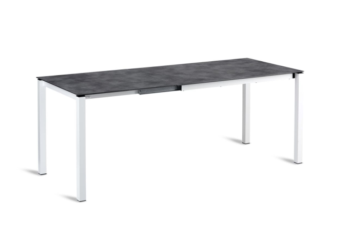Den Ausziehtisch gibt es in zwei unterschiedlichen Größen und jeweils in zwei Farben. Das stabile, standfeste Stahl-Gestell ist wetterfest verzinkt und zusätzlich beschichtet. Die HPL-Platte ist unempfindlich und kratzfest in einer eleganten Cement-Optik. Dank der praktischen Führungsschienen kann der Tisch schnell und ohne Kraftaufwand ausgezogen werden und die Einlegeplatten praktisch unter der Tischplatte mit wenigen Handgriffen verstaut werden. Maße:120/160-200x80cm / Tischhöhe: 75 cm