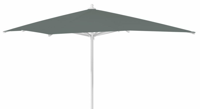 Der Großschirm Mallorca besitzt ein sehr stabiles Aluminiumgestell, einen zweiteiligen Stock mit 55 mm Ø sowie acht Streben aus Aluminium-Vierkantrohr. Die zusätzliche Pulverbeschichtung macht das Gestell pflegeleicht und absolut korrosionsbeständig. Die einzigartige Technik mit Seilzug und automatischer Arretierung ermöglicht ein einfaches und schnelles Öffnen und Schließen des Schirmes. Der Schirm mit 300 x 300 cm ist hochwertig bespannt mit 100 % Polyestergewebe, wetterfest und wasserdicht bis 300 mm Wassersäule. Das Gewebe ist lichtecht und schmutzabweisend beschichtet.