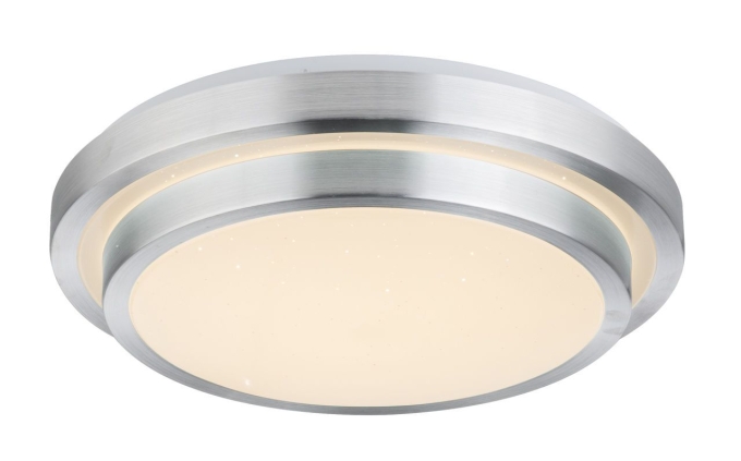 Ina II ist eine LED-Deckenleuchte, die im Grunde genommen erstmal recht schlicht aussieht, denn ihre Funktionen erschließen sich erst auf den zweiten Blick. Auf dem runden Deckenelement (ø41cm) befindet sich eine weitere Runde Platte. Beide Platten besitzen einen Aluminium Ring. Durch ihr schlichtes Design lässt sich die Leuchte in vielen Wohnbereichen integrieren. Die Leuchte verfügt über eine mitgelieferte Fernbedienung, mit dieser können Sie die Farben wechseln und fixieren. Außerdem können Sie je nach Wunsch und Bedarf die Leuchte dimmen, dadurch machen Sie die Wohnatmosphäre gemütlicher. Die Leuchte verfügt über ein integriertes 24Watt LED-Leuchtmittel und leistet insgesamt 1000Lumen starkes Licht. Die Leuchte ist vielseitig einsetzbar, egal ob Sie die Leuchte in Ihrem Schlafzimmer oder in ihrem Wohnzimmer benützen, die Leuchte wird aufgrund ihrer Funktionen ein echter Hingucker.