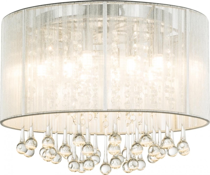 Globo SIERRA Deckenleuchte chrom, Seide silber metallic, Glaskristalle klar, inkl. 10676 LED, D:400, H:290, inkl. 8xG9 LED 3W 230V, 280lm, 3000K