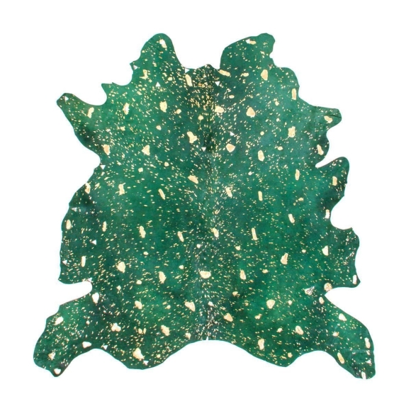 **Farbiger Lederteppich mit Gold- oder Silberakzenten**Das Design dieses Lederteppichs zeichnet sich durch das echte gefärbte Leder, edle Akzente aus Gold oder Silber, ansehnliche Ausstanzungen und die natürliche Form aus. In Räumen mit minimalistischer, schlichter Einrichtung und in Kombination mit Holz oder anderem Naturmaterial macht der Lederteppich besonders viel her. Durch die aufgedruckten Folienelemente in Gold oder Silber vermittelt das Kuhfell Luxus und Eleganz. Schaffen Sie eine gemütliche und edle Atmosphäre in Ihrem Zuhause, indem Sie den Kuhfellteppich als Bodenbelag, Sitzauflage oder Wandteppich nutzen. Auch in Räumen, die mit einer Fußbodenheizung ausgestattet sind, kann der gemütliche Bodenbelag genutzt werden. Erhöhen Sie den Kuschelfaktor zusätzlich, indem Sie Kissen, Sitzkissen und Decken in Teppichnähe platzieren. Der Teppich besteht zu 100 % aus echtem, hochwertigen Rindsleder, ist besonders pflegeleicht und durch einfaches Absaugen, Ausklopfen oder feuchtes Abwischen problemlos zu reinigen. Der leichte und flache attraktive Lederteppich schont Ihren Fußboden und verleiht dem Raum durch seine Exklusivität und seine Natürlichkeit einen edlen Touch.Bei echtem Rindslederfell handelt es sich um ein Naturprodukt, sodass es in Farbe und Beschaffenheit des Fells zu Abweichungen kommen kann. Dadurch ist jeder Teppich ein einzigartiges Unikat, da keine zwei Felle identisch sind.