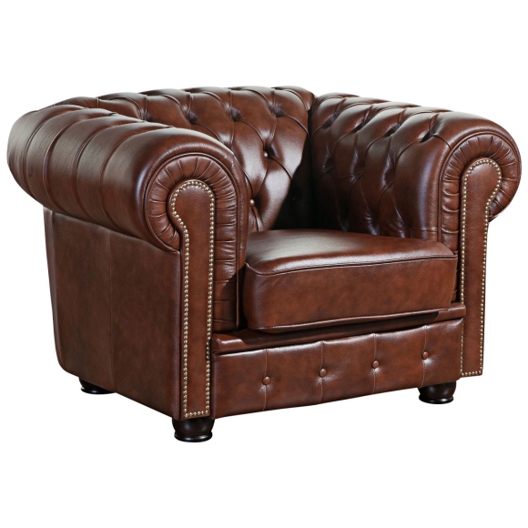 Norwin holt den englischen Chesterfield Stil in Ihr Wohnzimmer. Mit handwerklicher Wertarbeit wurde die aufwändige Knopfheftung im Rücken, an der Sitzrampe und den geschwungenen Armlehnen gefertigt.  Gearbeitet mit viel Liebe zum Detail erhält dieser Sessel seinen markanten, unverwechselbaren Look. Ob als Einzelsessel oder in Kombination zur passenden Garnitur, mit Norwin holen Sie sich englischen Charme in Ihr Zuhause. Die Füße sind zur einfachen Selbstmontage. ·110x98x74 in cm (BxTxH) ·Nettogewicht 44 kg ·Wischleder ·100% Leder ·Sitzhärte fest ·Anzahl Sitze 1 ·Gurtunterfederung, Sitzkissen lose aus Polyätherschaum mit Diolenabdeckung ·Fußfarbe Buche nussbaum dunkel ·stabiles Holzgrundgestell aus Massivholz und Holzwerkstoffen ·Bodenfreiheit 8 cm ·Armteilhöhe innen vorn/hinten 28 cm ·Höhe ohne Füße 68 cm ·Rückenhöhe innen 28 cm ·Sitzbreite vorn/hinten43 cm ·Sitztiefe 56 cm ·Sitzhöhe 47 cm
