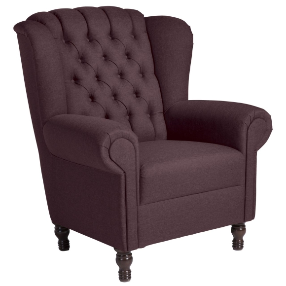 Ein repräsentativer Platz zum Lesen, Fernsehen und Entspannen. Sehr edler Ohrenbackensessel in klassischem Chesterfield-Look in Kombination mit modernen Farben und Materialien. Hergestellt in handwerklicher Wertarbeit. Mit schicker, aufwändiger Knopfheftung und geschwungenen Armlehnen für besondere Eleganz. Die Füße sind zur einfachen Selbstmontage. ·91x90x101 in cm (BxTxH) ·Nettogewicht 35 kg ·Flachgewebe ·100% Polyester ·Sitzhärte mittel ·Anzahl Sitze 1 ·Wellenunterfederung, schaumummantelter Federkern mit Diolenabdeckung ·Fußfarbe Buche nussbaum dunkel ·stabiles Holzgrundgestell, aus Massivholz und Holzwerkstoffen ·Bodenfreiheit 13 cm ·Armteilhöhe innen vorn/hinten 16 cm ·Höhe ohne Füße 68 cm ·Rückenhöhe innen 60 cm ·Sitzbreite vorn/hinten50 cm ·Sitztiefe 53 cm ·Sitzhöhe 44 cm